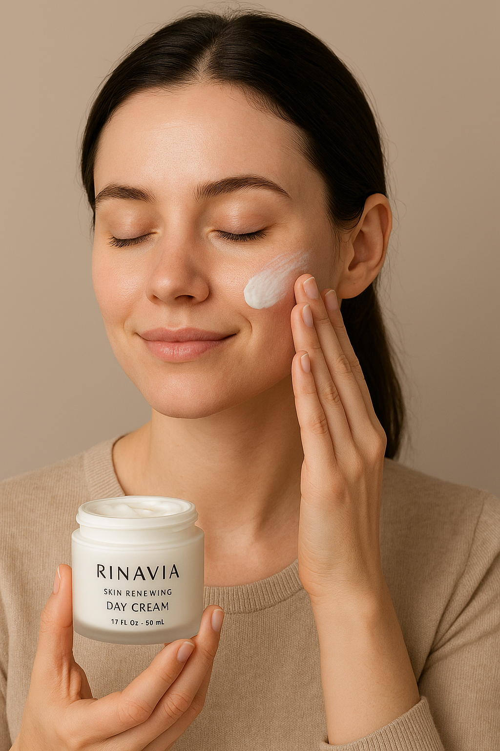 Rinavia Skin Renewing Day Cream is a lightweight daytime face moisturizer formulated to keep skin hydrated, support surface renewal processes and protect skin from daily environmental stressors like pollution and mild oxidative stress. The cream is designed to absorb quickly and leave a non-greasy finish, making it suitable for both men and women who prefer a light daily moisturizer.